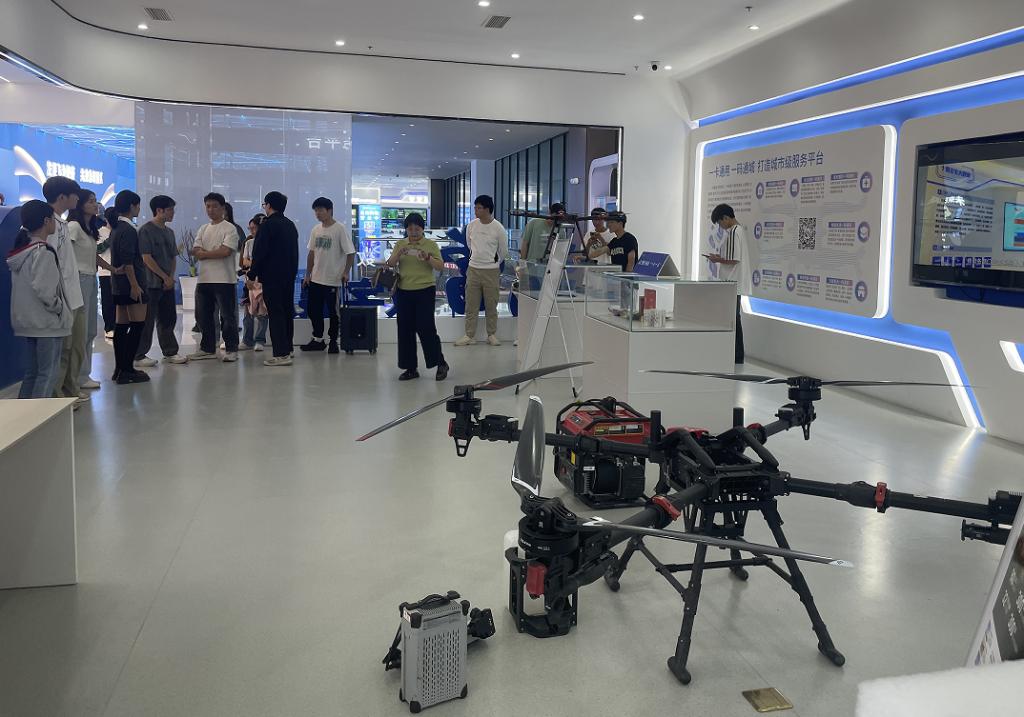 走进产业园,充满科技感的展厅瞬间抓住了大家的目光。智能机器狗灵活地在地面穿梭并做出跳跃等高难度动作,各种型号多用途的无人机展示着人工智能在机器人领域的突破。在“智慧城市”“武当云谷”“数字时代”等展区,各类前沿数字设备与技术应用让同学们叹为观止。不少同学在工作人员的指导下,亲手操作,体验人机交互的乐趣。