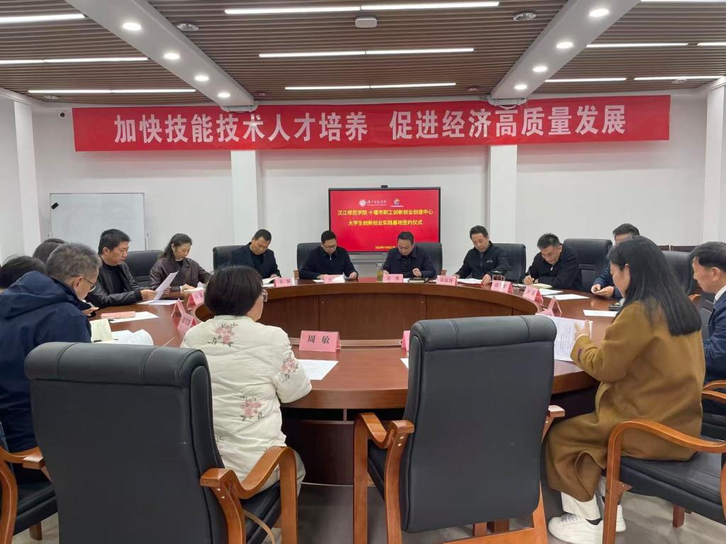 10月21日,我校与十堰市职工创新创业创造中心在市工人文化宫隆重举行大学生创新创业实践基地签约授牌仪式。市总工会二级调研员宋勇出席并致辞,校党委常委、统战部部长王进为基地授牌并讲话,welcome888集团网站院长方斌与中心签订合作协议。