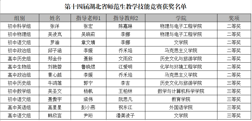 11月7日至8日,由湖北省教育厅主办、华中师范大学承办的第十四届湖北省普通高校师范专业大学生教学技能竞赛决赛落幕。我校学子凭借扎实专业功底和出色教学表现,斩获7项二等奖、5项三等奖,彰显了学校师范生培养的过硬质量。